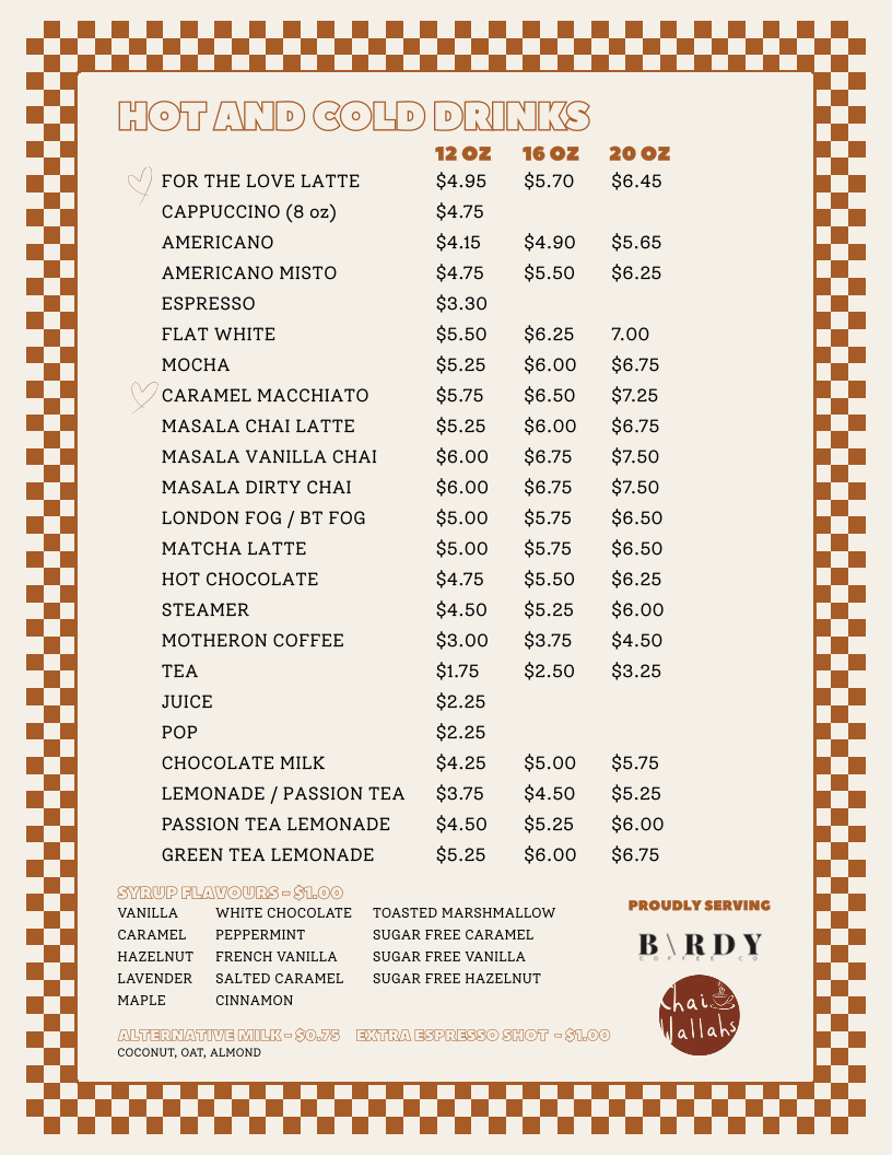 16 OZ or 20 OZ, flavours change weekly!